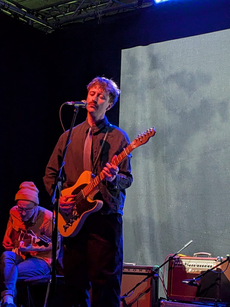 But there was also much serious work to be done. ‘Julia’ has a delicate seventies prog-folk feel to it, while the murder ballad ‘Three Lovely Ladies’ was delivered with appropriate aplomb and just a little menace. ‘On The Run’ had echoes of Mike Heron’ of Incredible String Band fame, ‘Lost’ is a plaintive song that evoked memories of Al Stewart and benefitted from Odlum’s subtle piano contributions, and ‘Yearning’ left space for that droning open-tuning guitar style too.