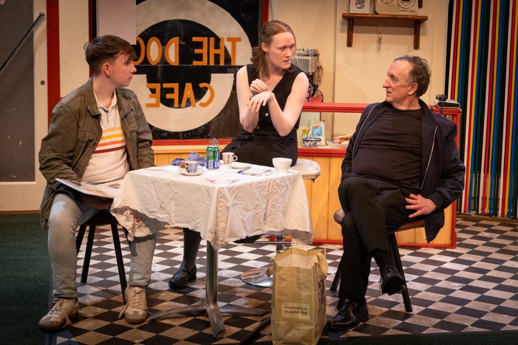 The drama centres on a trio, with Phil Athens the most complex. Once a snooker star, Phil now survives on memories of acclaim and the faint hope of revival — his snooker cue, hanging on the café wall, acting as a sort of talisman, reminiscent of Robert Redford’s baseball bat in The Natural. Gary Lydon delivers a finely calibrated performance, revealing how Phil’s flashes of generosity are undercut by insecurity and cruelty, particularly in his needling of Mike, where bravado barely masks his unease at his diminishing relevance. Shauna, by contrast, embodies endurance. With outstanding control, Síofra O’Meara charts her movement from brisk competence into telling pauses that expose the weight of responsibility and the erosion of her personal boundaries. When her composure fractures after a betrayal of trust involving a bracelet (another emotionally charged object), the eruption feels earned — a performance where restraint carries equal weight to confrontation. Mike completes the uneasy triangle, offering a quieter counterpoint to Phil’s bluster and Shauna’s resolve. James Doherty O’Brien portrays him with understated clarity, marking the character through hesitant movement and guarded physicality. Raised in care and living without firm footing, Mike’s faith in snooker as a route forward mirrors, in diminished form, Phil’s nostalgia for past success. As these individuals jostle for survival, the play shifts fluidly between barbed exchanges and moments of grudging tolerance. These fleeting orientations complicate the play’s determinist framework, allowing space for compassion without denying the limits of circumstance. Ultimately, Of Mornington offers a thoughtful, humane portrait of lives suspended rather than extinguished — a play about disappointment, self-preservation, and the faint yet persistent possibility that something may still give, even in places designed to prevent it. Though the characters move in circles, hemmed in by habit and environment, Roche avoids outright fatalism: brief gestures of connection and self-recognition suggest the possibility, if not the likelihood, of change. In that sense, this is a play of hope.