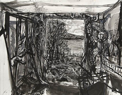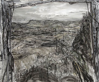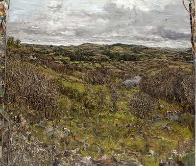 He began using a converted truck as a mobile studio in the late 1990’s as a way to facilitate working on a large scale, protected from the elements, in the Co. Sligo landscape where he is based. The resulting Truckscapes have been shown across the world to critical acclaim. Since 2009, the truck from which they were painted, has sat immobile in what may be its final resting place; a steel yard at the back of his current studio, in the lee of Sligo’s Ben Bulben, the imposing and iconic mountain.